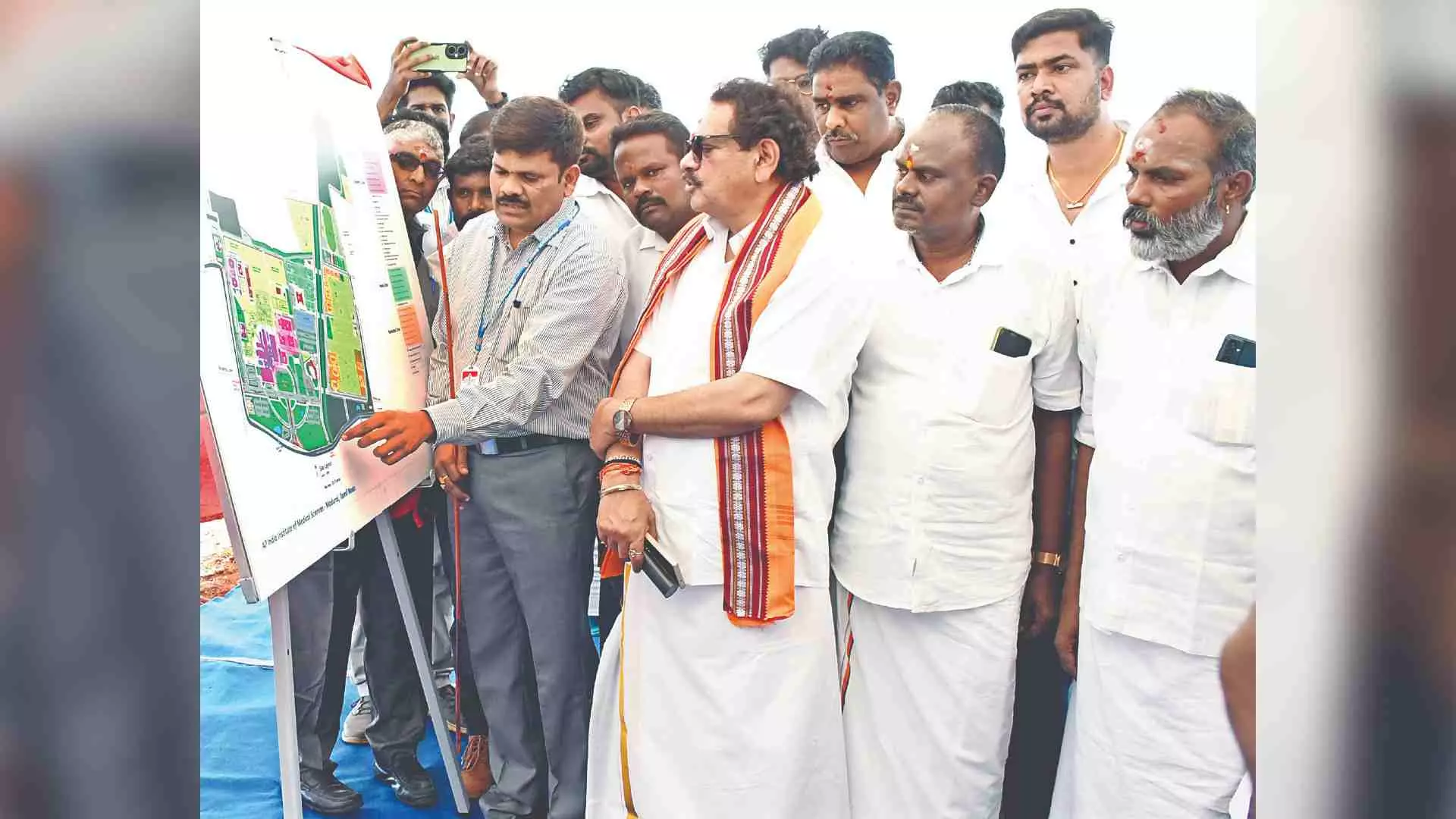 Union Minister SP Singh Baghel inspecting Madurai AIIMS project plan