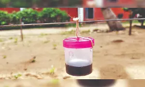 Stating that 500 ml was enough for an acre he said the repellent should be placed in small plastic boxes and tied on a wire between wooden poles on the perimeter at about 2.5 feet from the ground. “Holes should be bored into the container to allow the repellent to seep out,” he said.
