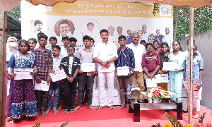 CHENNAI: Tamil Nadu School Education Minister Anbil Mahesh Poyyamozhi honoured students who aced Class 10 and 12 board exams, while undergoing an intense treatment for cancer, here on Saturday. Felicitating the students, he also praised their determination and focus.