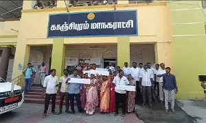 The Kancheepuram Corporation Mayor Mahalakshmi Yuvaraj, and 35 DMK councillors and 16 Opposition party councillors participated in the meeting. Soon after the meeting commenced, the councillors of the opposition parties started to protest by showing placards against the corporation.