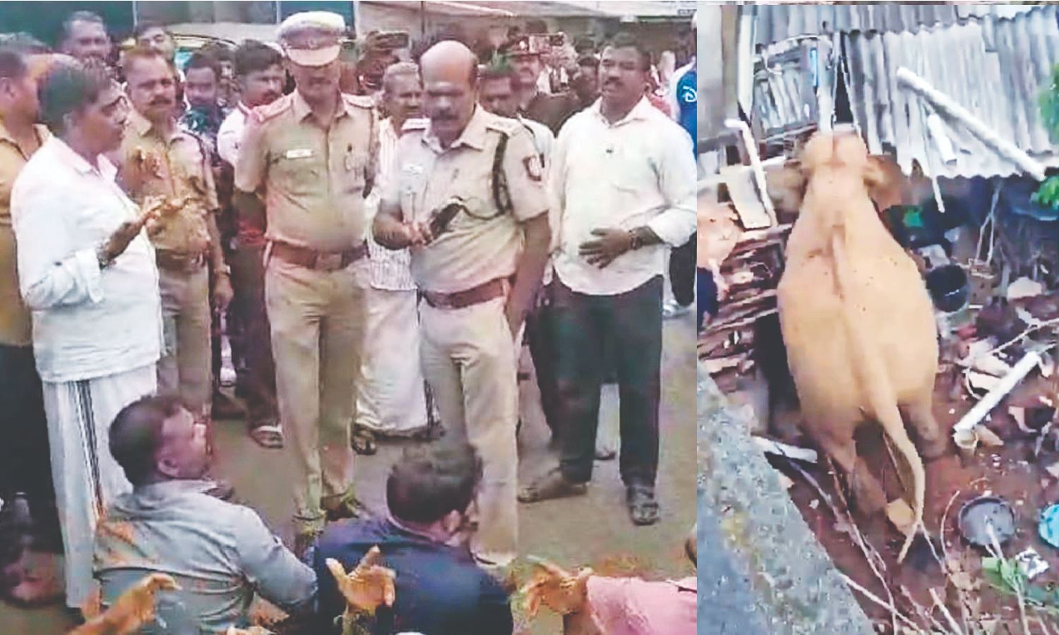 Police interacting with villagers of Pandalur; (right) wild elephant spotted in Nilakottai Bazar area