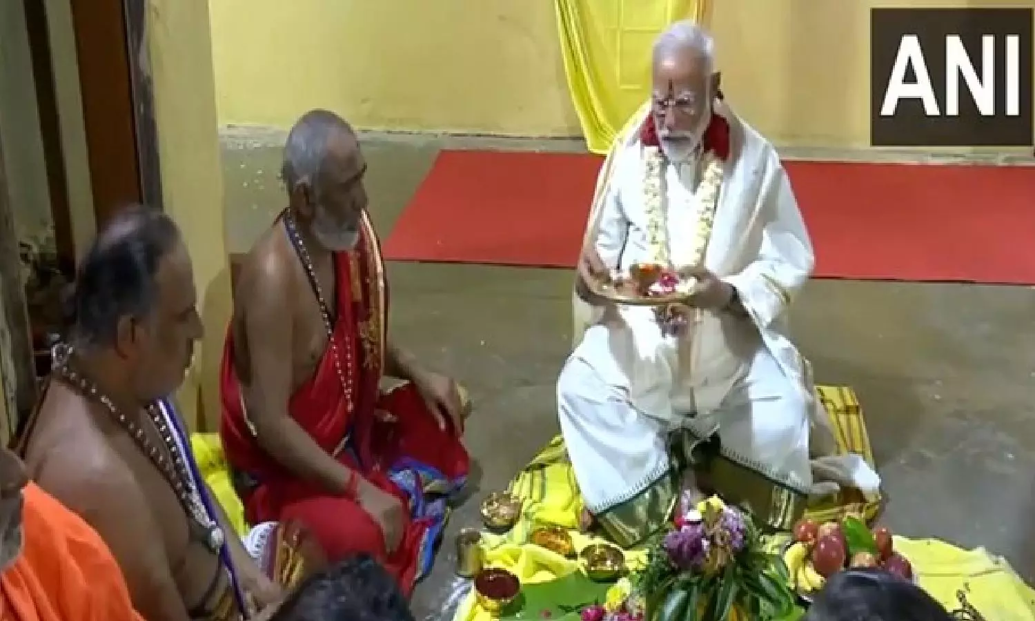 Prime Minister Narendra Modi performs puja at Kothandaramaswamy Temple in Dhanushkodi (ANI)