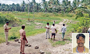 When the SSI attempted to resolve an altercation between Murthy, 65, and his two sons, the elder son Manikandan, angered by his intervention, hacked him to death, while the constable and a farm manager fled in fear. The trio also vandalised the patrol vehicle and threw away the cops' walkie-talkie.