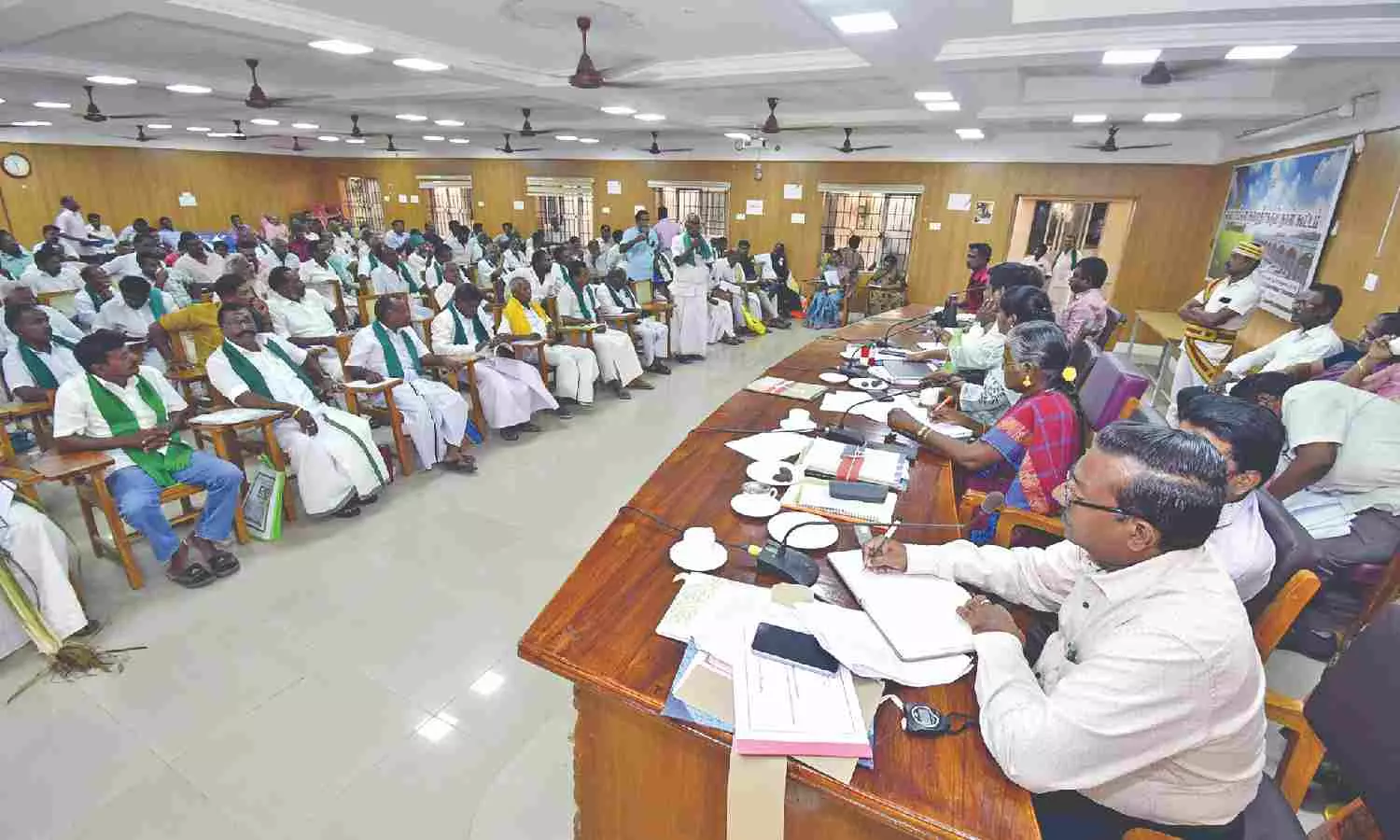 The farmers’ grievances redressal meeting, chaired by the district collector B Priyanka Pankajam, was held in Thanjavur during which the farmers pointed out that the administrative works at Arignar Anna Sugar mills are not up to the mark and the officials refused to meet the farmers who tried to put forth their grievances. They expressed uncertainty over this year’s cultivation. Meanwhile, the farmers cultivating samba charged that there is no adequate water for samba cultivation in the Sengipatti area which forced them to complete cultivation with a single crop. Irrespective of the water released from Mettur this year, there is no adequate water at the Kattalaimettu Canal and Uyyankondan Canal to date and thus two crop cultivation would certainly be doubtful, they added.