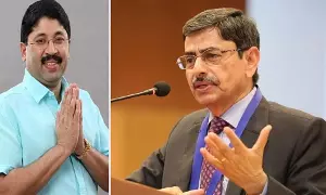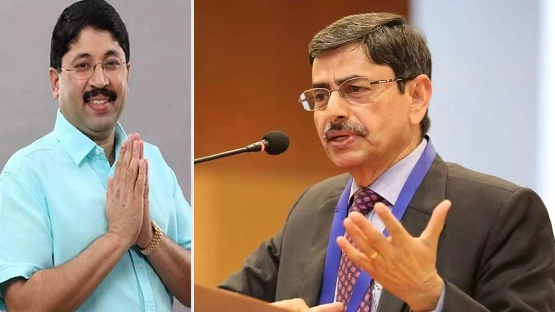 (L-R) DMK MP Dayanidhi Maran; Governor RN Ravi