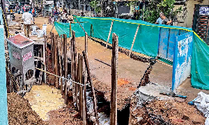 The corporation official at the site stated that, after witnessing the crack on the street, digging works were stopped and barricades were placed to avoid injuries.