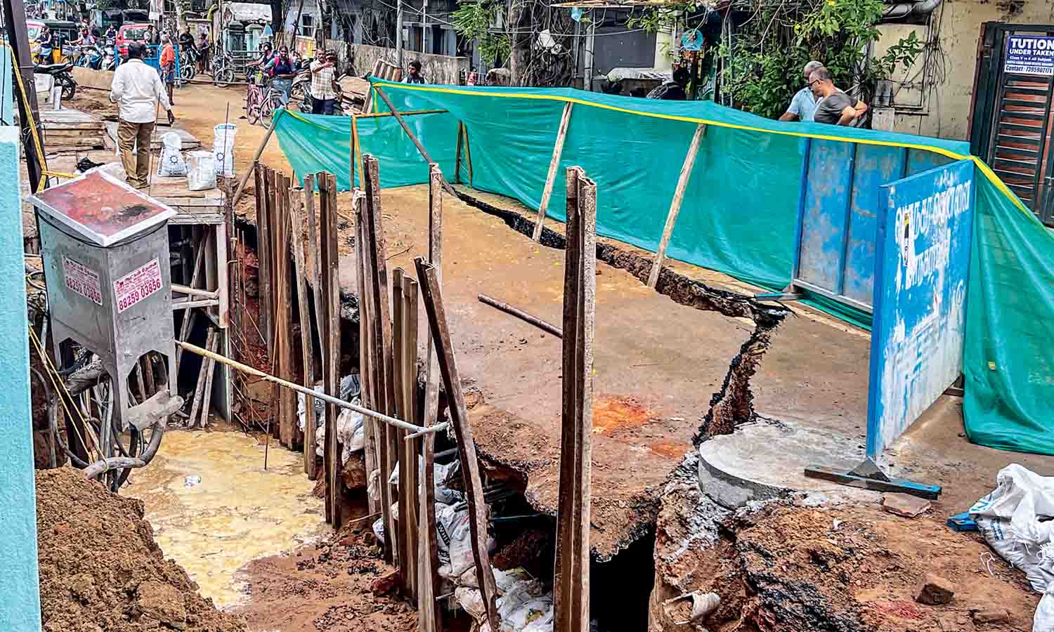 The cave-in after the SWD works at Bajanai Koli Main Road