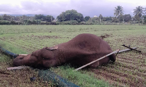 The elephant reportedly knocked down an electric pole, causing it to fall, and became entangled in the live wire, resulting in its death.