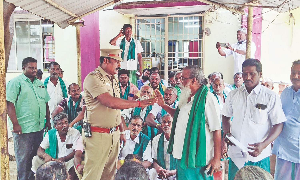 Even as the divisional-level farmers’ grievances redressal meet was in process, all of a sudden, a section of farmers headed by farmer leader P Ayyakannu locked the office, leaving the officers inside and staged a protest demanding action against an individual alleging that he had usurped the land belonging to Kasi Viswanathar Visalakshi Amman temple at Woraiyur. The farmers claimed that they had alerted the officials earlier, but in vain.