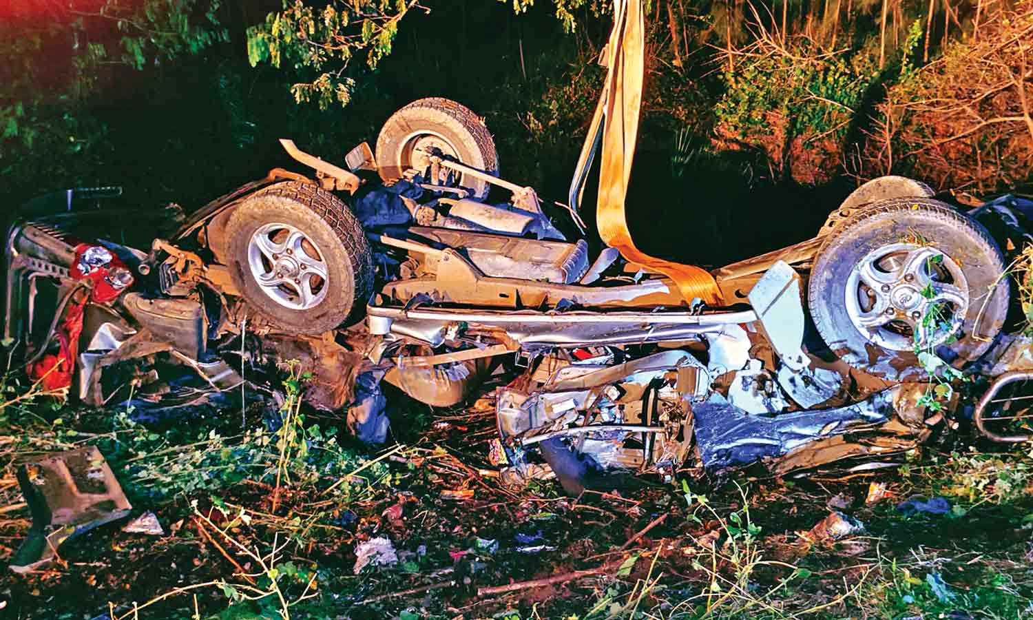 Mangled remains of SUV involved in the mishap on Sunday
