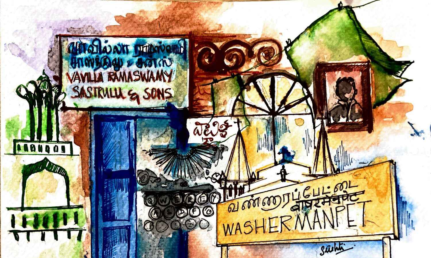 Washermanpet evolved humbly beside the canals, where families made their living washing and drying cloth. Over time, it became a thriving neighbourhood, carrying the pulse of Chennai’s working-class struggle