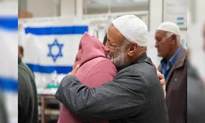Freed captive Bilal Ziyadne (left) reunites with his family on November 30 (Photo/TPS)