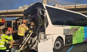 No death was reported, but a driver of the chartered bus was seriously wounded and taken a hospital.