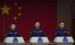 China rotates a three-member crew manning the space station named Tiangong every six months.