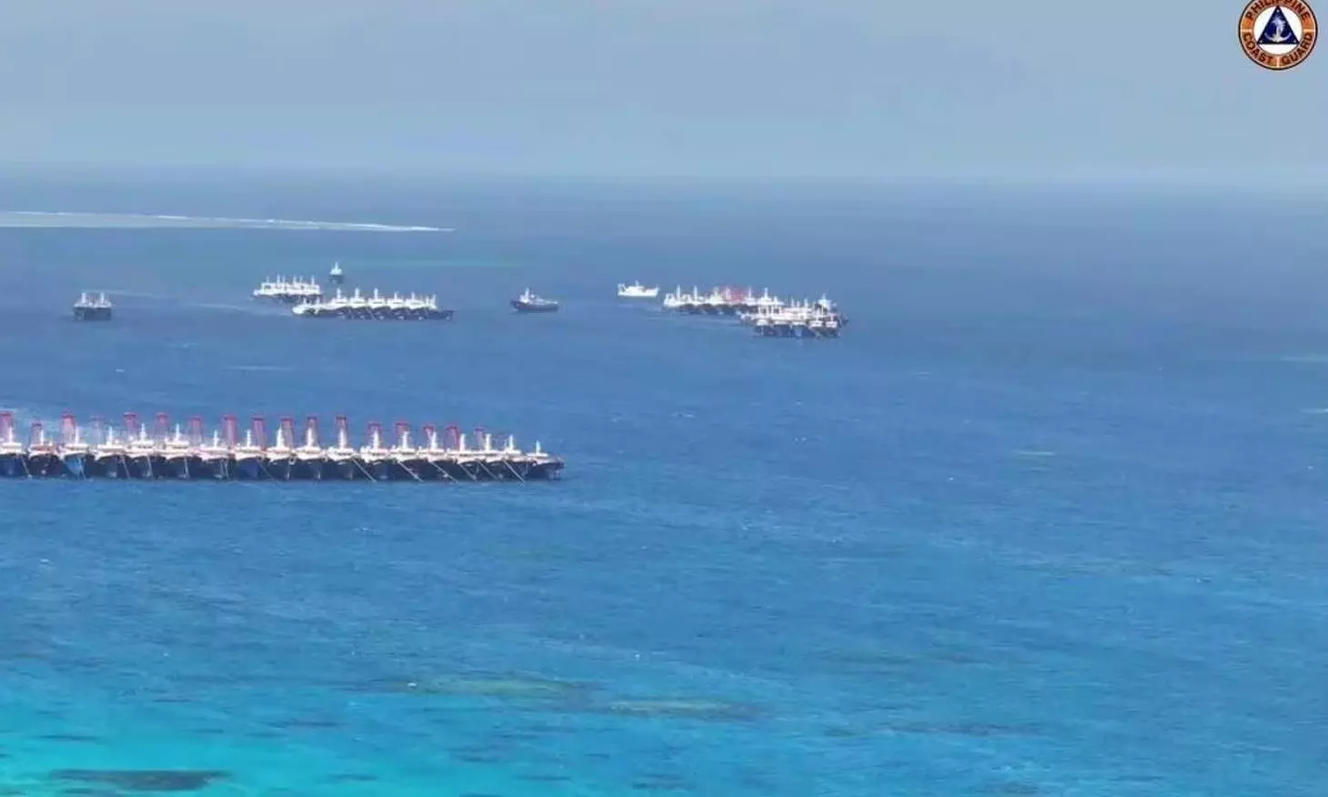 Chinese militia vessels operate at Whitsun Reef in the South China Sea (Reuters)