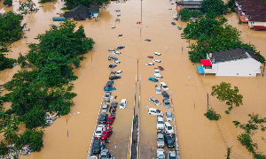 The flooding caused severe disruption, leaving thousands of people stranded, rendering streets impassable and submerging low-rise buildings and vehicles.