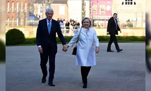 Former U.S secretary of state and Chancellor of Queen's University Belfast, Hillary Clinton and former U.S president Bill Clinton (Photo/ Reuters)