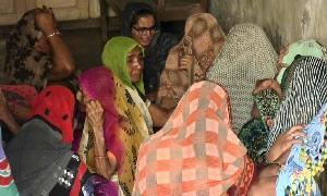 Family members and relatives mourn outside the residence of Pradipkumar Patel and his daughter who were shot dead at a convenience store in the US state of Virginia, in Mehsana district, Gujarat (PTI)