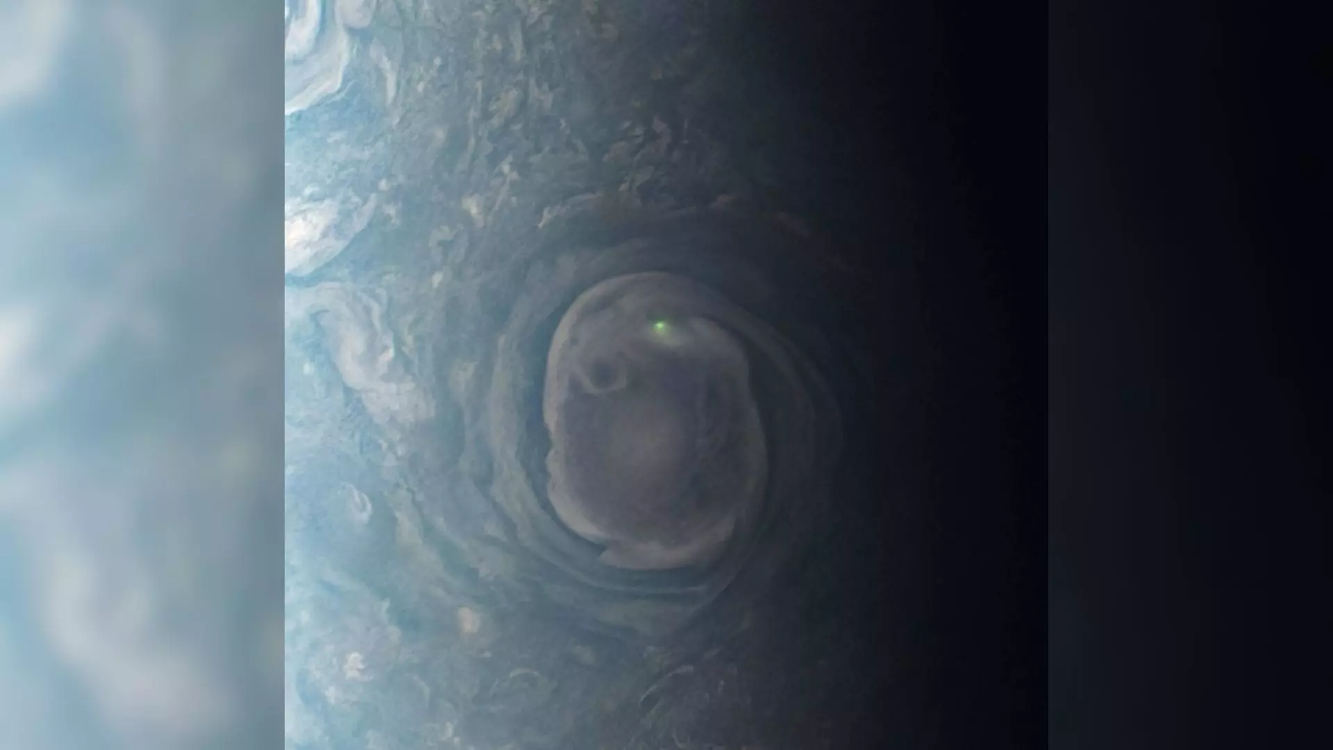 The spacecraft's JunoCam instrument observed the glow from a bolt of lightning.