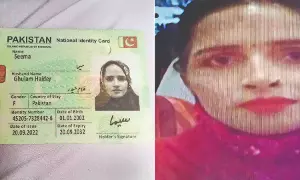 Combo picture shows identity card of Seema Ghulam Haider (Left), and her portrait