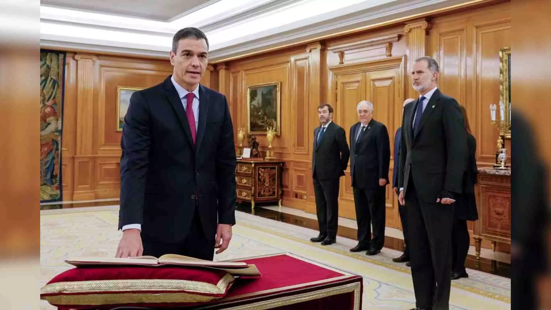 Spain's Prime Minister Pedro Sanchez takes the oath of office during a ceremony at Zarzuela Palace (Photo/Reuters)