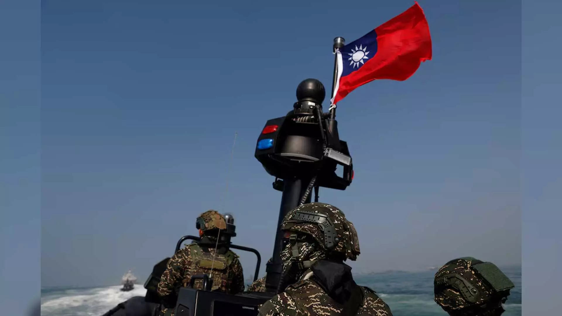 Members of Taiwan's Navy and media onboard a special operation boat with a Taiwanese flag fluttering over it during a drill (Photo/Reuters)
