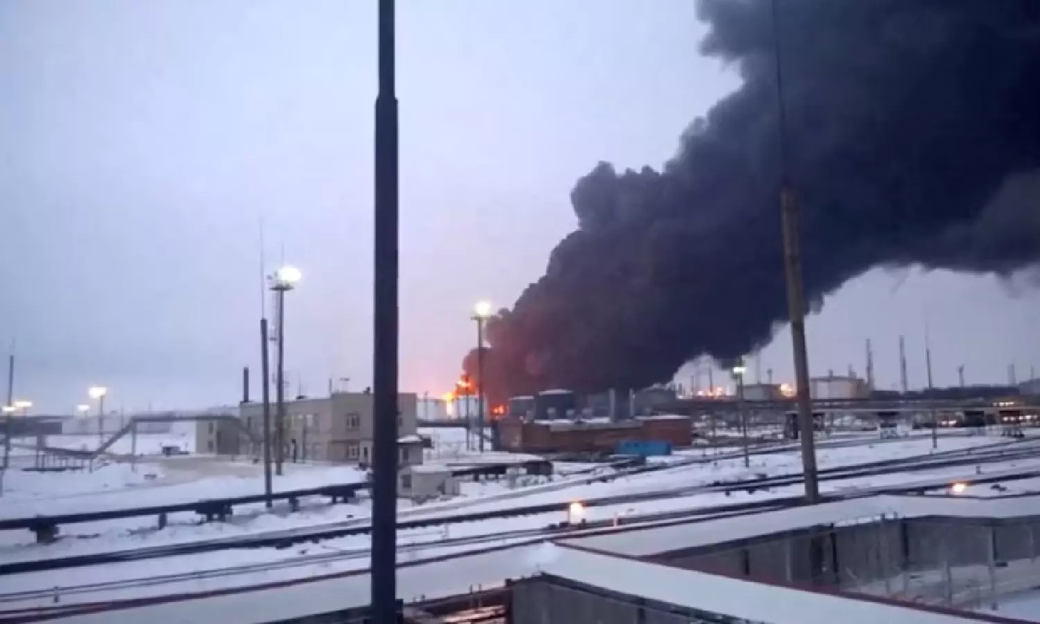 Smoke billows after Ukraine's SBU drone strikes a refinery, amid Russia's attack on Ukraine (Reuters)