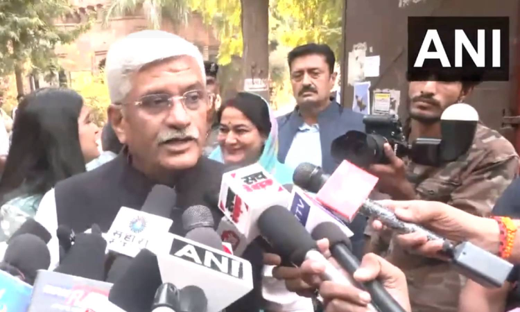 State BJP chief and MP CP Joshi arrives at a polling booth in Chittorgarh to cast his vote.