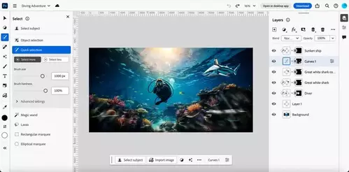 The desktop version of Photoshop recently released Generative Fill and Generative Expand features are now also available on the web.